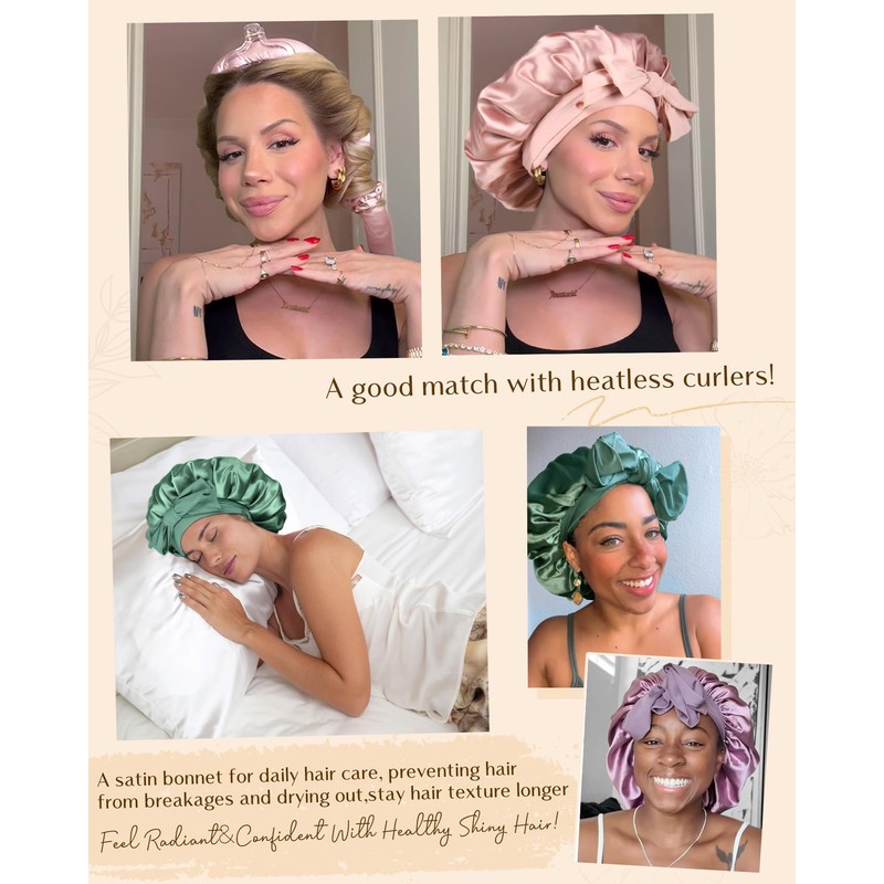 - STYLISH & MULTIPURPOSE You can use the soft wide ribbon on the satin bonnet to make a beautiful bow on the forehead or to the side and make yourself unique; Can be used for many occasions, sleeping, doing chores, makeup, gym, running, yoga, etc.