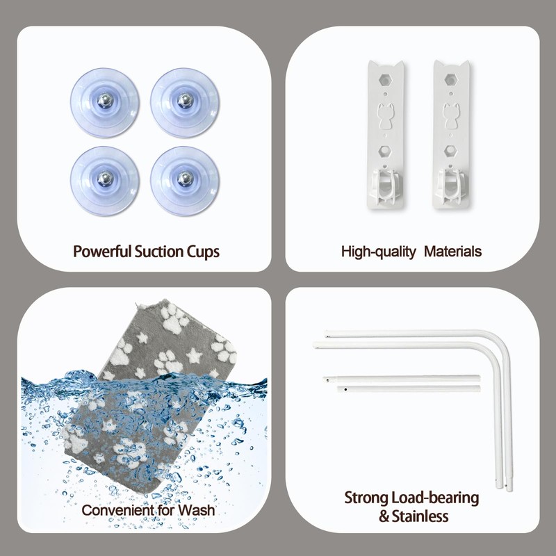 - Sturdy and Stable: The cat hammock is made of durable metal frame and cozy plush fabric, and can be fixed to the window glass through 4 suction cups. The large powerful suction cups make it sturdy and stable, with a load capacity of up to 40 pounds