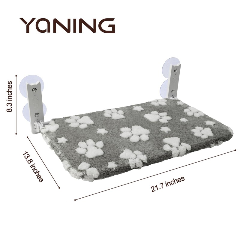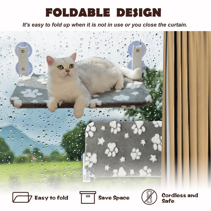 Yaning Cat Window Perch, Foldable Cat Window Hammock with Cute 3D Textured Paw Cover and Strong Suction Cups, Cordless Cat Window Seat Bed for Indoor Cats (Grey, Large)