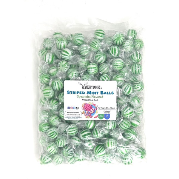 - Spearmint Striped Hard Candy Balls, 3 Pounds Bulk