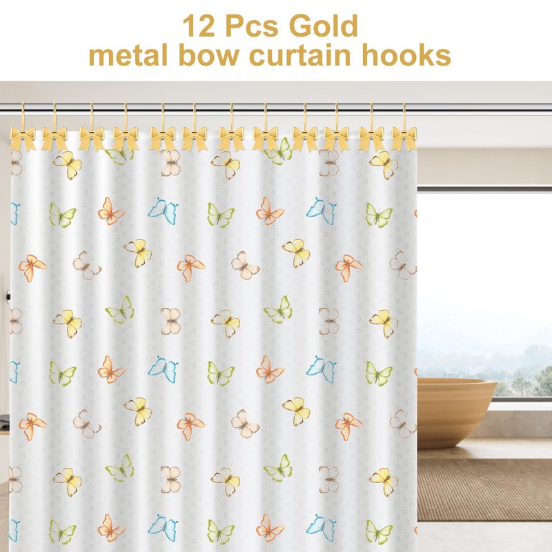 • PACKAGE CONTENTS: Set of 12 decorative bow-shaped shower curtain hooks made of durable metal with rustproof finish. IN ORDER TO REDUCE THE USE OF PLASTIC, WE CHANGED THE ORIGINAL PLASTIC PACKAGING BOXES INTO MORE COMPACT SMALL PAPER BOXES, WHICH MAKES THE PRODUCTS PLACED IN THE BOXES IN DISORDER, BUT THIS COULD REDUCE THE USE OF PLASTIC IN PACKAGING TO ZERO.