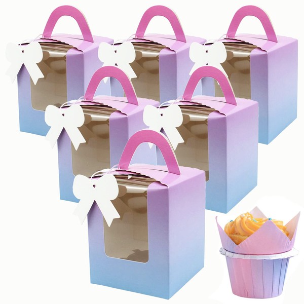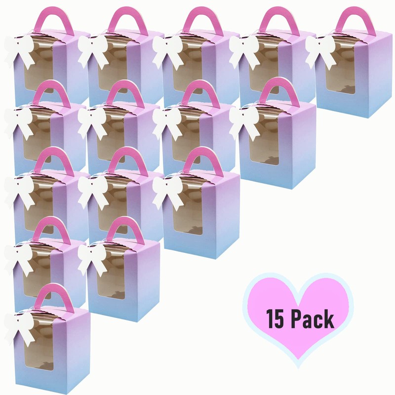 YankMooM 15 Pcs Single Cupcake Boxes,Individual Gradient Color Cupcake Boxes with Clear Window and Handle for Wedding Party and Gift Giving,Small Cakes Treat Boxes