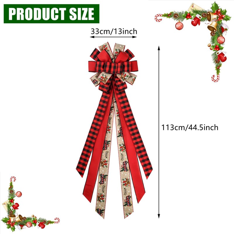 - Wide Application: This is a multifunctional Christmas bow decoration suitable for various occasions. You can not only tie the Christmas bow to your Christmas tree and wreath, but also hang it on windows, doors, walls, stairs, fences, fireplaces, etc. It can also be a great Christmas gift for friends, relatives, and neighbors
