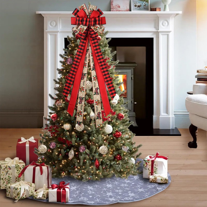 - Freely Shape: The Christmas tree topper bow adopts a flexible metal wire edge ribbon design, allowing you to shape it as you please, making the bow look more three-dimensional and plump. (Kind reminder: Please be careful with the iron wire on the edge to avoid scratching during the molding process)