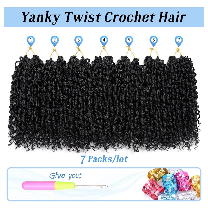 - Yanky Twist Crochet Hair Details: Yanky twist crochet hair with 7 packs per lot and 30 strands per pack, you can fully cover your head with just 7 packs voluminous look. We offer more color and size options to match your unique style for daily wear or special occasions