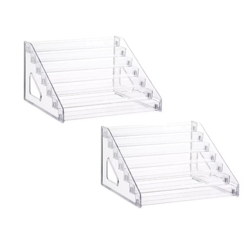 - Clear and Sturdy Material: Made from transparent acrylic with polished edges for safety. The sleek design enhances visibility, while raised railings on each tier prevent bottles from falling, ensuring secure and organized storage