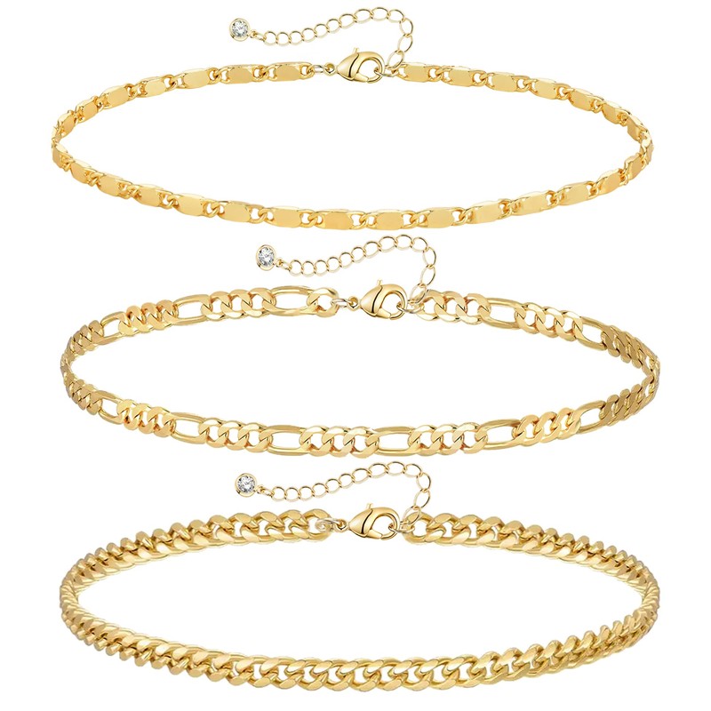 - 🌴3Pcs GOLD ANKLETS SET🌊 Set Contains ①Cuban Anklet ② Figaro Anklet ③Mariner Anklet. Create Different Looks By Wearing it Alone or Layering it with Other Jewelry Such as Anklets or Bracelets. This Simple Anklet Takes You From Day to Night with Style, 3Pcs Gold Stylish Bracelet for Women is The Perfect Elegant and Fashionable Jewelry