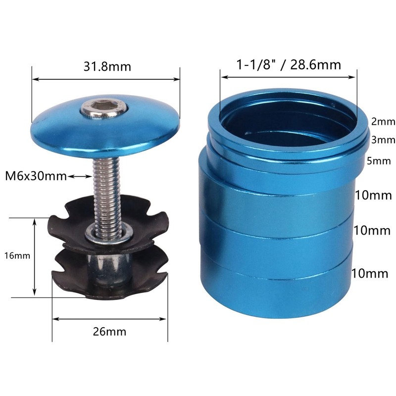 YANRUHFL 1 1/8 Inch Headset Spacer with Stem Top Cap,Headset Star Nut (Blue)