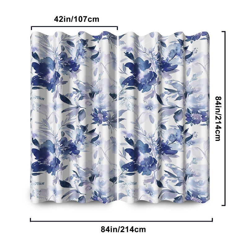 Yanutan Blue Purples Flower Blackout Curtains for Bedroom/Living Room,2 Panels Sets Window Curtain,Blue Purples Floral Blooming Thermal Insulated Printed Curtains with Grommet,42" Wx84 L
