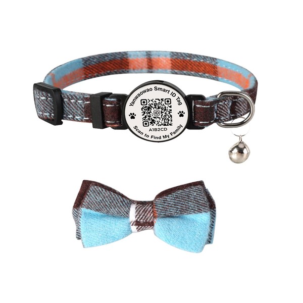 Yanwaowao Cat Collar with Bells Kitten Collars Breakaway with Bow Tie QR Code (Blue)