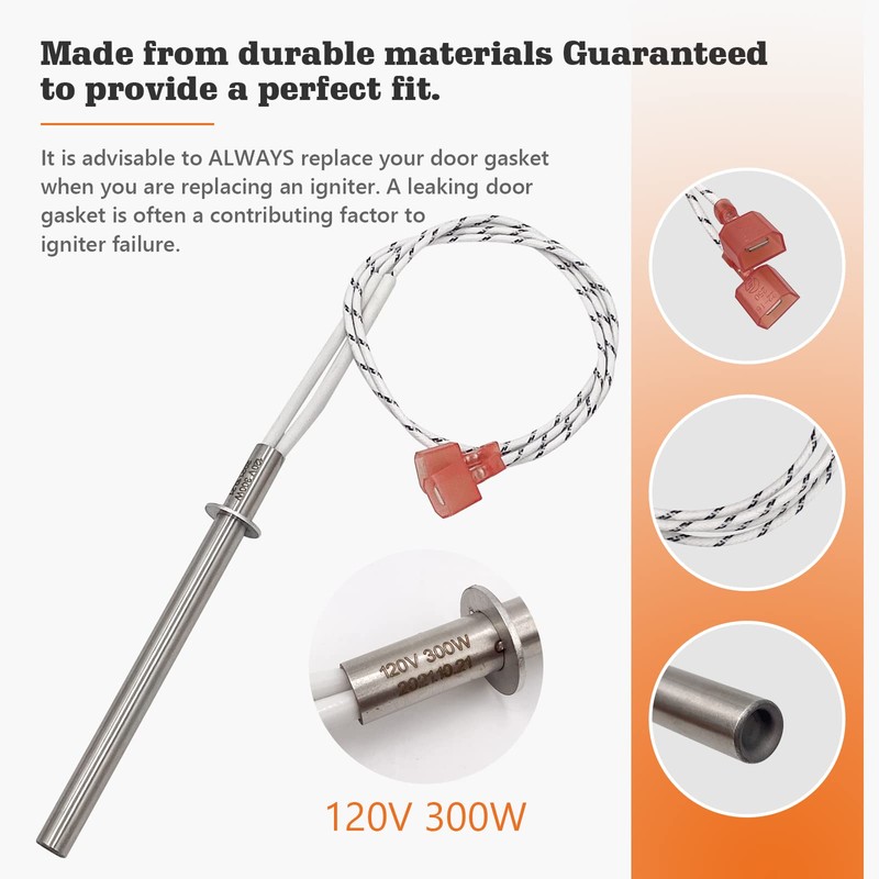 • 🔥GET YOUR HOME WARMED UP QUICKLY - 300W 120V igniter pellet stove made from durable materials and guaranteed to provide a perfect fit. The metal part of the ignitor is 4.9" and the wire lead is 16", male spades connectors are easy to install, which can help you to keep fire going and infusing family with warmthin this season!