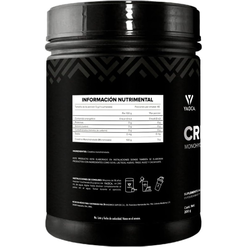 "YAOCA Creatina Monohidratada Micronizada 200g | 40 Servicios | Sin Sabor | Alta Pureza"