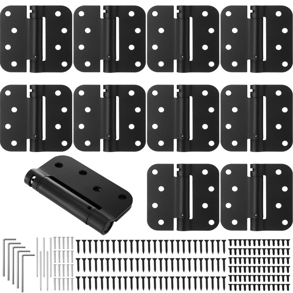 Yaocom 10 Pcs Self Closing Door Hinge 3.5'' Spring Loaded Hinges Automatic Door Closer Hinge Adjustable Tension for Garage, 5/8'' Radius Corners(Black,4'')