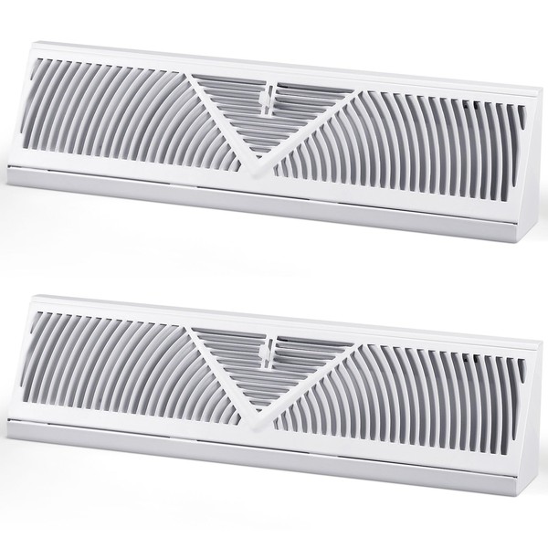 Yaocom 2 Pack Baseboard Register Vent 24 Inch Duct Opening Size Vent Covers for Home Floor Diffuser Wall Corner Baseboard Air Covers, Smooth Air Adjust Lever, Easy Install, White