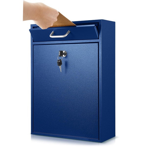 Yaocom Locking Mailbox with Key for Outdoor 16.2 x 11.2 x 4.7 Inches Large Wall Mount Mail Box with Lock Security Mail Drop Metal Collection Boxes Hanging Secure Postbox(Dark Blue)