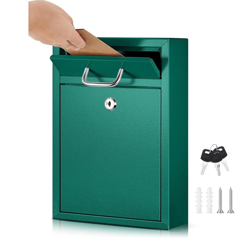 - Quality Material: crafted from quality metal material, this robust drop box promises durability; The wall mount mailbox is coated with green plating which prevents peeling off paint and rust, extending the product's service life