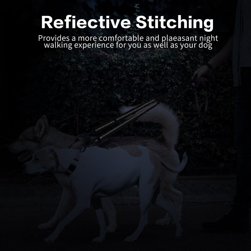 4.This heavy-duty leash with reflective stitching improves visibility in the dark, making it easy to locate your dog in low-light environments or inside the car