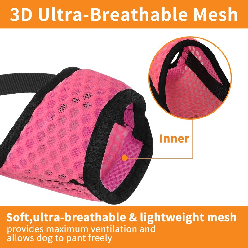 - 【Breathable & Comfortable】Made of premium nylon mesh materials, our dog muzzles provide excellent ventilation for dogs to breathe, soft yet highly durable for long-term use. Thanks to the soft edges and its lightweight, this soft muzzle for dogs is skin-friendly and has zero pressure for dogs to wear.