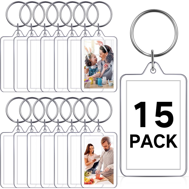 Yaomiao 15 Pieces Acrylic Photo Frame Keychain Holder 1.3 x 2 Inch Photo Picture Insert Blank Keyring for DIY Craft