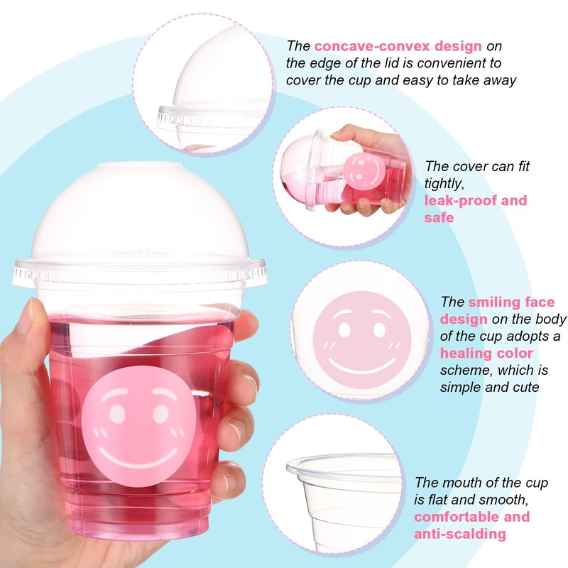- Abundant Quantity and Appropriate Size: the package includes 36 smile face sipper cups, fulfilling the need for larger quantities for gatherings or parties; Each cup holds up to 12 oz, the ideal size for quenching your thirst without requiring constant refills
