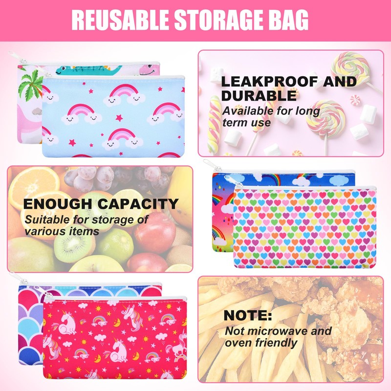 - Interesting Pattern Design: these cartoon snack bags are printed with beautiful and attractive patterns like rainbows, dinosaurs, unicorns, hearts, clouds, flowers and so on, these vivid patterns can satisfy the interests of children, especially boys, and give them surprises