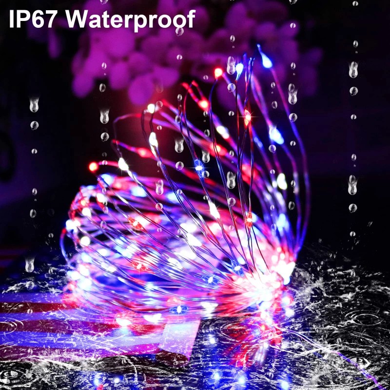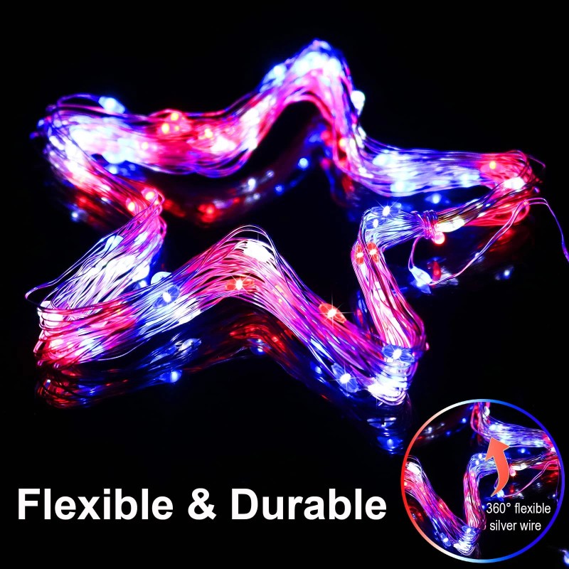 - Pretty Lights: 2 Pack Total 200 starry LED lights with red white and blue colors like the stars in sky, same colors with American flag, creating a grand view and solemn ambience for patriotic holiday, add a soft, festive glow to your decor.