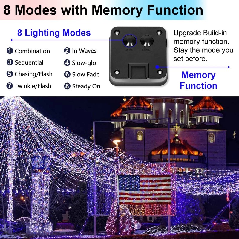 - 8 Lighting Modes with Memory Function: Our solar string lights have 8 lighting modes for you to choose: combination, in waves, sequential, slo glo, chasing/flash, slow fade, twinkle/flash, and steady on. Comes with memory function, remember last setting automatically after turn off the power, no need to reset again.