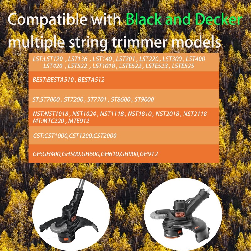 - Compatible models: Compatible with black and decker string trimmer : GH400 , GH500 , GH600 , GH610 , GH900 , GH912 , BESTA510 , BESTA512 , BESTE620 , LST120 , LST136 , LST140 , LST201 , LST220 , LST300 , LST400 , LST420 , LST522 , LST1018 , LSTE523 , LSTE525 , ST7000 , ST7200 , ST7700 , ST7701 , ST8600 , ST9000 , NST1018 , NST1024 , NST1118 , NST1810 , NST2018 , NST2118 , CST1000 , CST1200 , CST2000 .