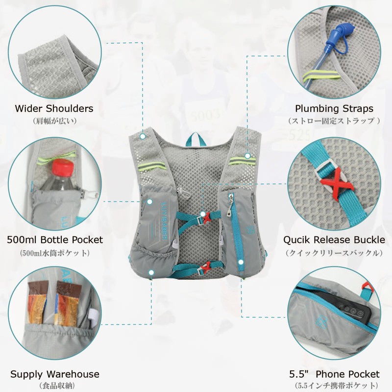 • Adjustable and Stable Fit: Adjustable shoulder and chest straps with a smooth buckle aim to distribute weight evenly, reduce bounce, and provide stability during running or hiking