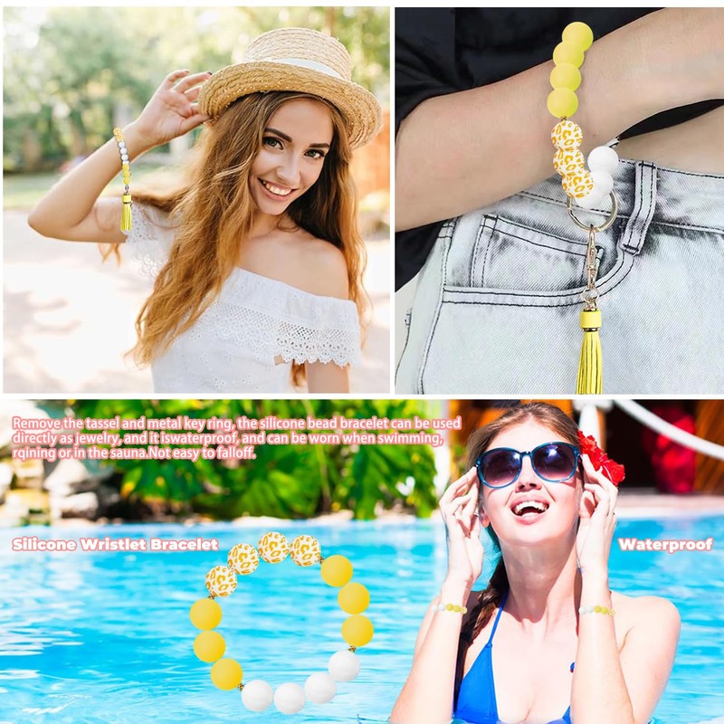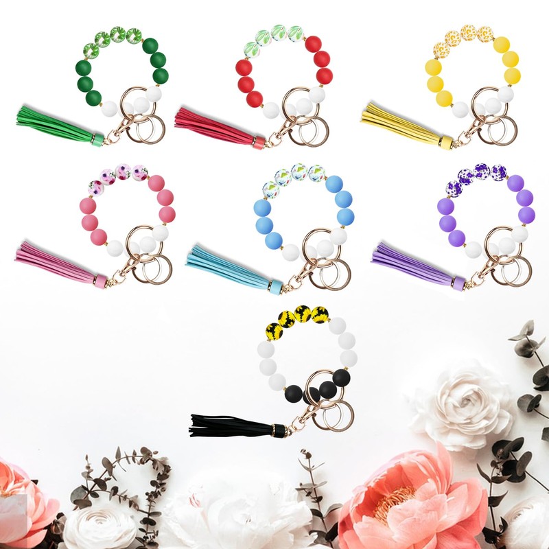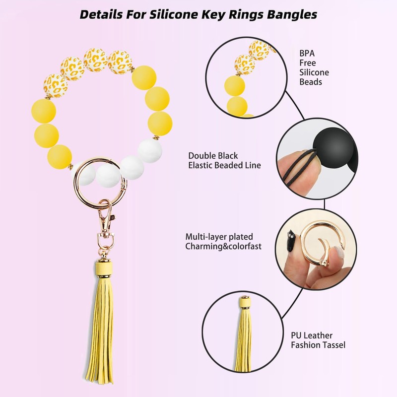 - [High quality silicone]-YAPROMO wristlet keychain composed of 14 silicone food-grade beads, equip with fashion leather tassel and practical swivel metal clasp of gold color. It's very durable, well made & the size is perfect! The silicone keychain bracelet is a prefect addition to your keys.