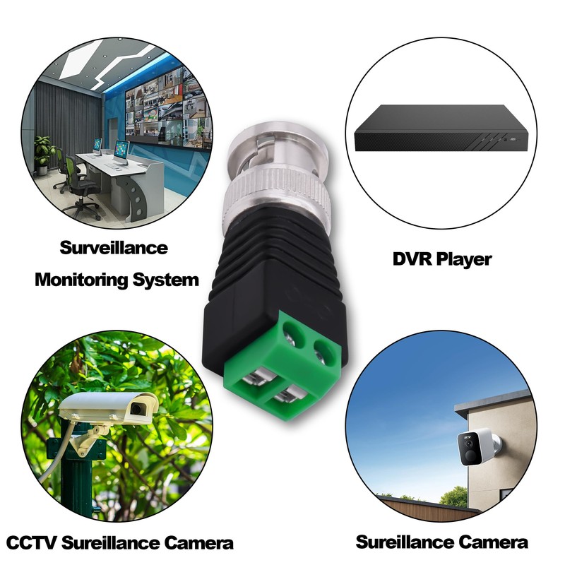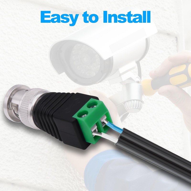 - Kompatible Geräte: Dieser BNC-zu-lötlose Schraubenklemme-Stecker wird verwendet, um koaxiale Cat 5 / Cat 6-Kabel an CCTV-Kameras oder andere Geräte mit BNC-Anschlüssen zur Übertragung klarer Videosignale anzuschließen.