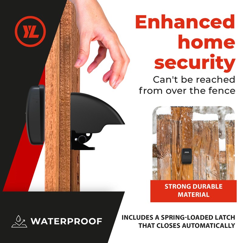 - SAFE AND SECURE: Always works - No keys, batteries or electronics needed. Can't be reached from over the fence, thanks to the strong latch cover. Built to last C WATERPROOF. Will not freeze nor rust.