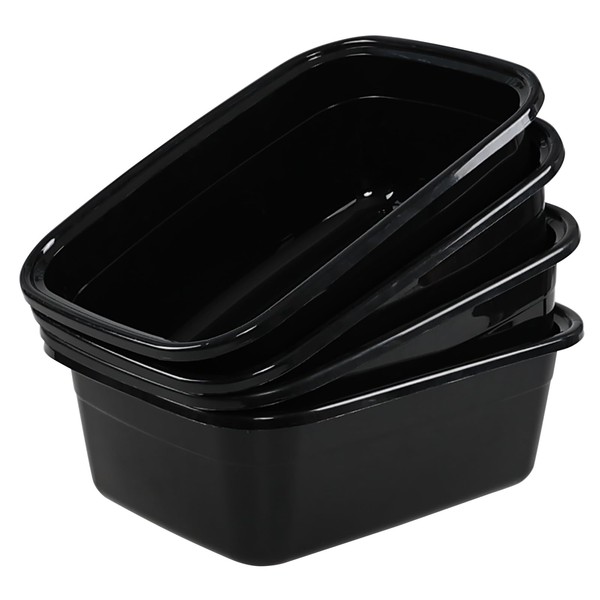 Yarebest 4-pack 12 Quart Small Wash Basin Pan, Plastic Rectangular Dish Pan, Black