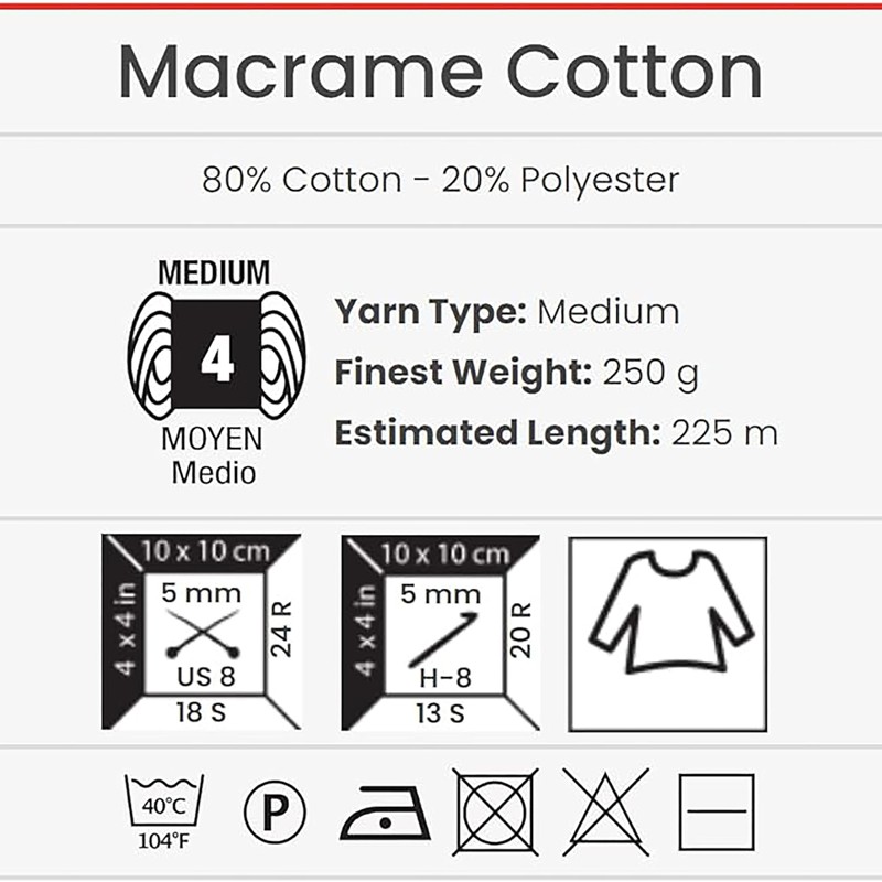 YarnArt Macrame Cotton, Macrame Yarn for Crafting, Knitting, and Crochet, Unique Macrame Crafts 8.80 Oz, 246.06 Yds 80% Cotton Macrame Cord, Macrame Yarn Weight Medium (752-Off White)