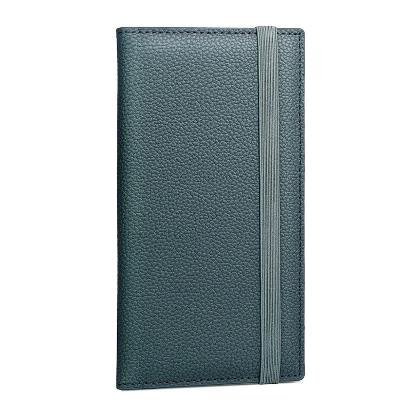 Yarnic Checkbook Cover for Personal Checkbook, Checkbook Holder with Pen Holder & Built-in Clear Plastic Divider for Duplicate Checks (Grey Green)