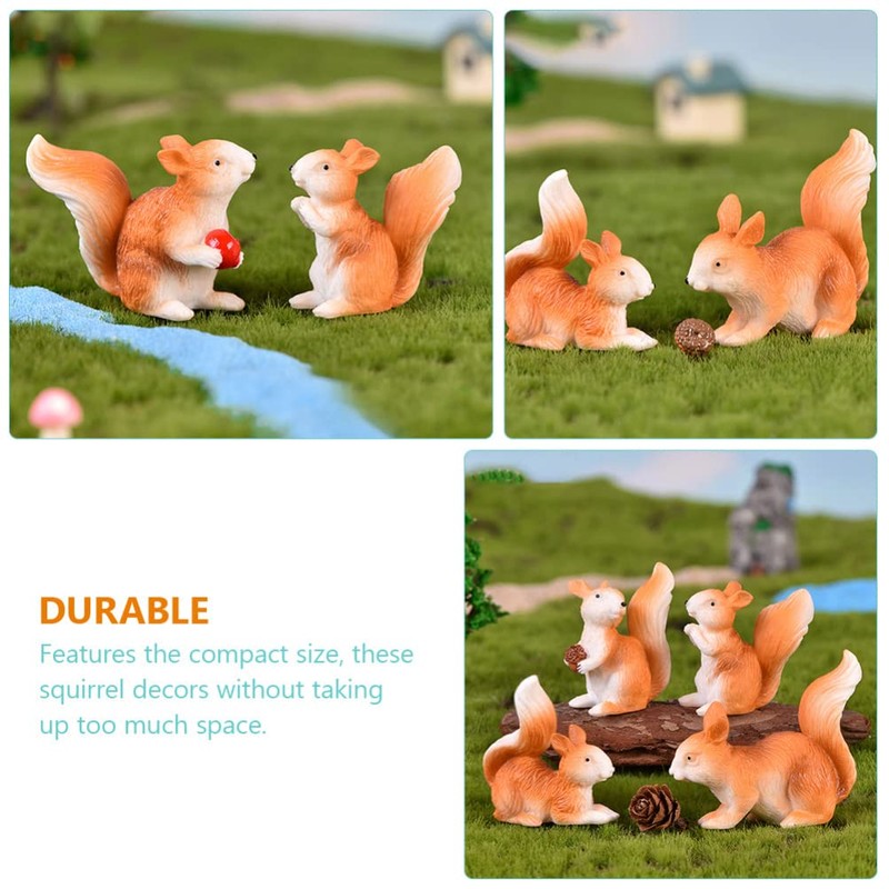 - Adorable Set of Mini Squirrels for Outdoor Decor and DIY Fairy Gardens Mainly made from good resin material, gentle and , to use.