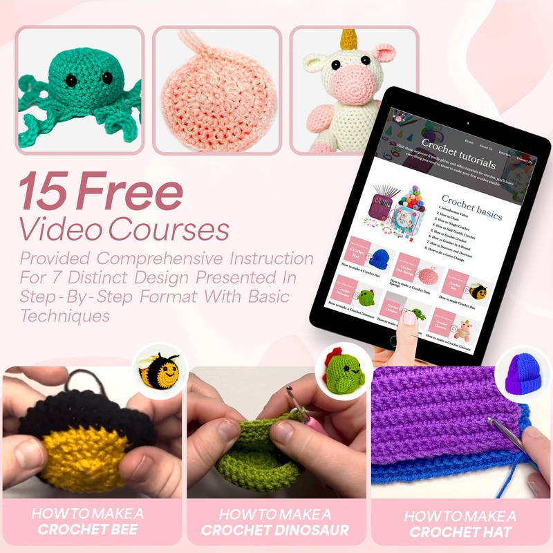 - STEP-BY-STEP VIDEO TUTORIALS: Unlock the art of crochet effortlessly with our kit's step-by-step video tutorials. Whether you're taking your first steps into the world of crochet or looking to refine your skills, these tutorials provide clear and concise guidance. Learn to crochet kits for adults beginner as you follow along with expert instructions and bring your imaginative creations to life.