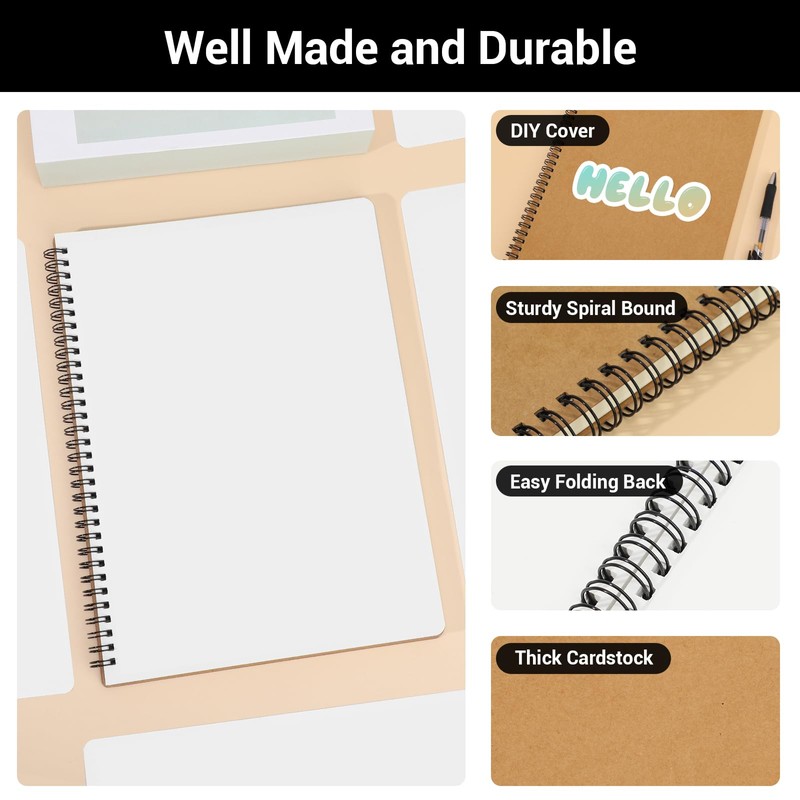 - [700 GSM Kraft Cover Notebooks] Solid but flexible cardboard as a cover, can be painted or glued. Feels comfortable.