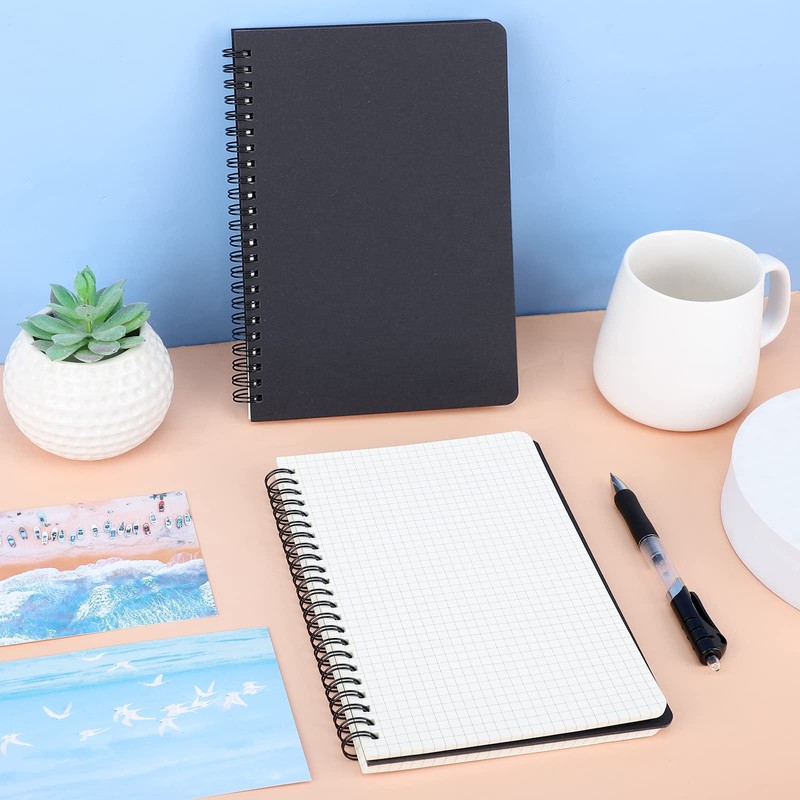 Yarotm Notebook A5 Squared - Pack of 2 Spiral Notebooks 14 x 21 cm - 100 g/m² Checked 5 x 5 mm Notepad A5 60 Sheets / 120 Pages Notebook A5 Spiral Bound - Black College Notepad Diary