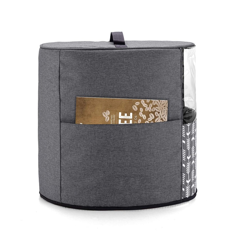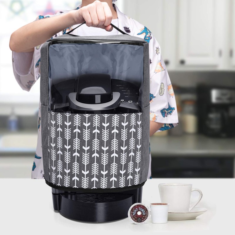 Yarwo Coffee Maker Dust Cover Compatible with Keurig K-Classic and K-Select, Visible Coffee Machine Cover with Pockets and Top Handle, Gray with Arrow
