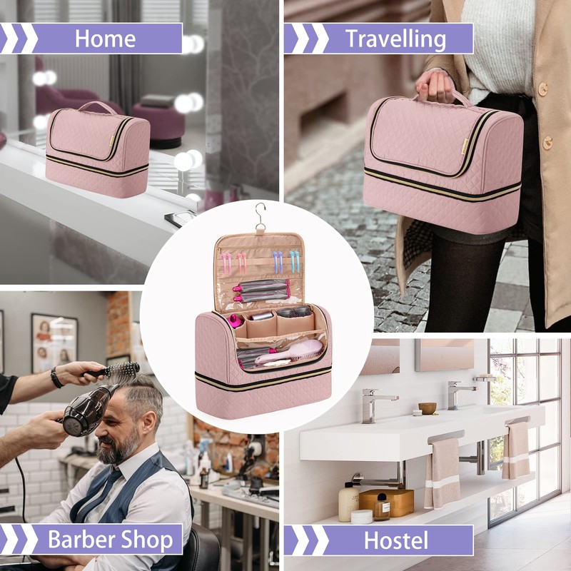 Yarwo Yarwo Double-layer Storage Bag Compatible with Dyson Airwrap Multi-styler Complete Long and Attachments, Portable Travel Case with Hanging Hook for Hair Curler Accessories, Dusty Rose (Bag Only)