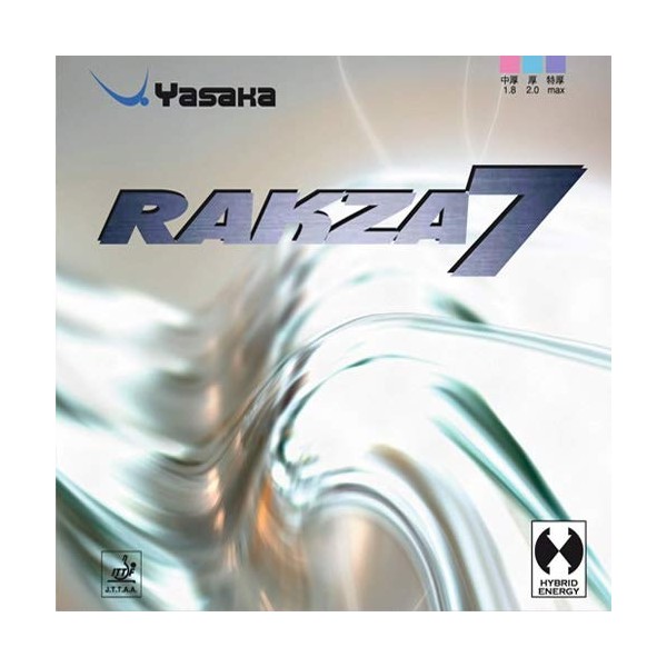 - In the new development Yasaka Rakza 7, the upper rubber is mainly made of natural rubber. This improves grip and spin pleasure enormously. In addition, the surface has been combined with the new "Power Sponge". In harmony, these two materials create perfect synergy. The result: the hybrid energy coating Rakza 7. The player can place the ball precisely thanks to the special coating properties