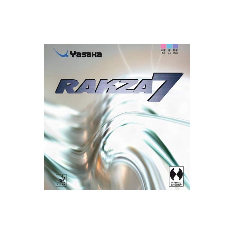 • In the new development Yasaka Rakza 7, the upper rubber is mainly made of natural rubber. This improves grip and spin pleasure enormously. In addition, the surface has been combined with the new "Power Sponge". In harmony, these two materials create perfect synergy. The result: the hybrid energy coating Rakza 7. The player can place the ball precisely thanks to the special coating properties