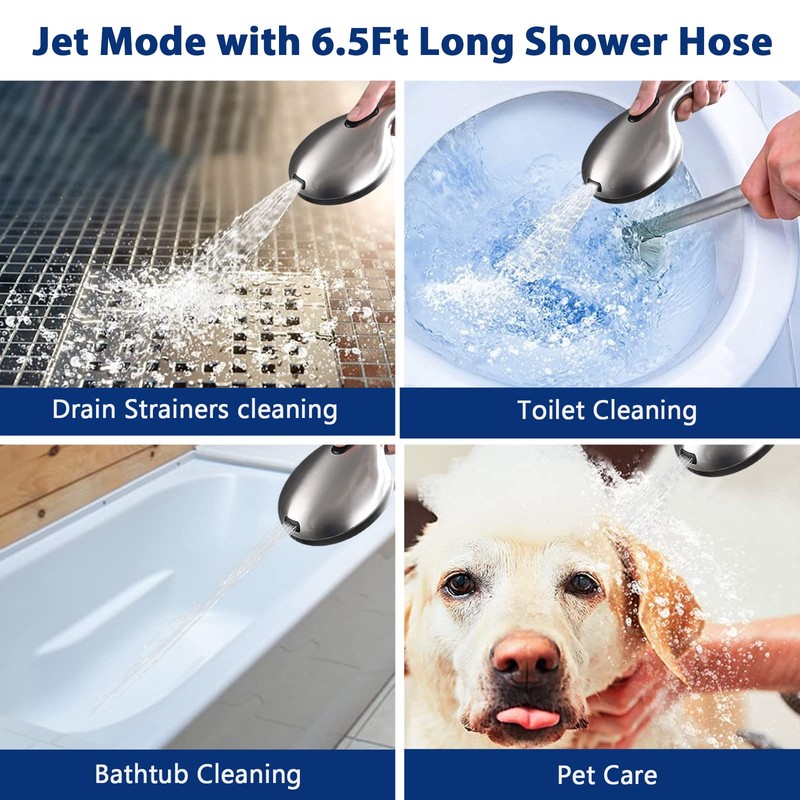 - Premium Material: Hand held shower has brushed nickel plated durable ABS material, high strength 304 stainless steel hose, anti-clog rub-clean nozzles for easy cleaning and prevent lime buildup