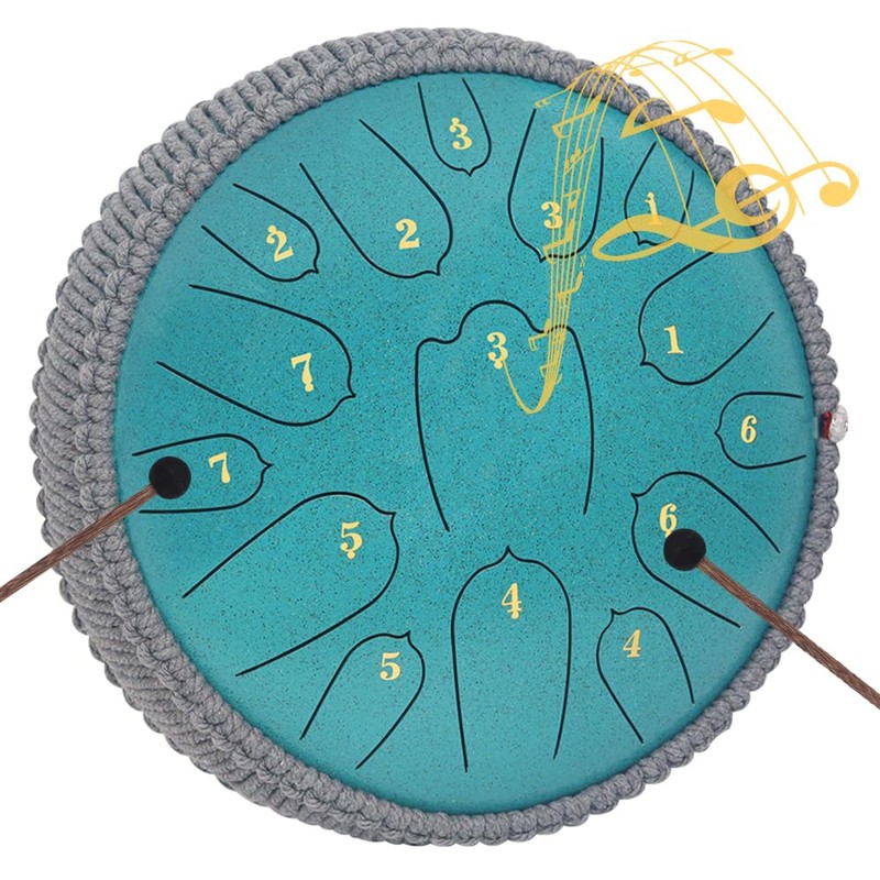 - Steel tongue drumStandard D key, 15 note, diameter 12 Inche, treble 123, midrange 1234567, bass 34567, it is very important to have more notes, the more notes you can play, the more songs you can play, it can satisfy both professional performances and beginners adult or learner needs.