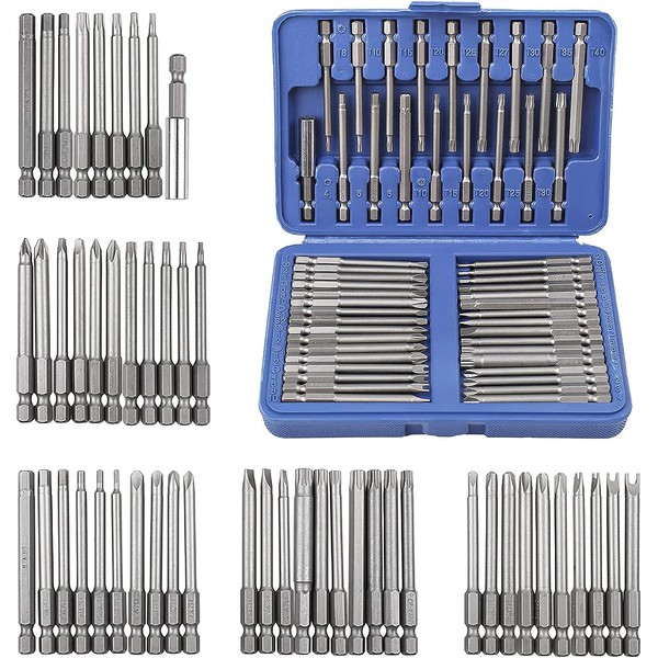 - [Screwdriver bit set multi bit set - 50pcs] : Star, TP Star, Clutch, Torq, Spline, Tri-Wing, Square, Spanner, Flat, Phillips, Pozidriv, Hex Bits & Hex Bits TP in a variety of sizes, it is efficient and quality, helping you to complete the work quickly