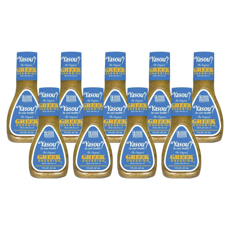- Extra virgin olive oil, aromatic apple cider vinegar, and spices are blended to create a classic taverna-style dressing