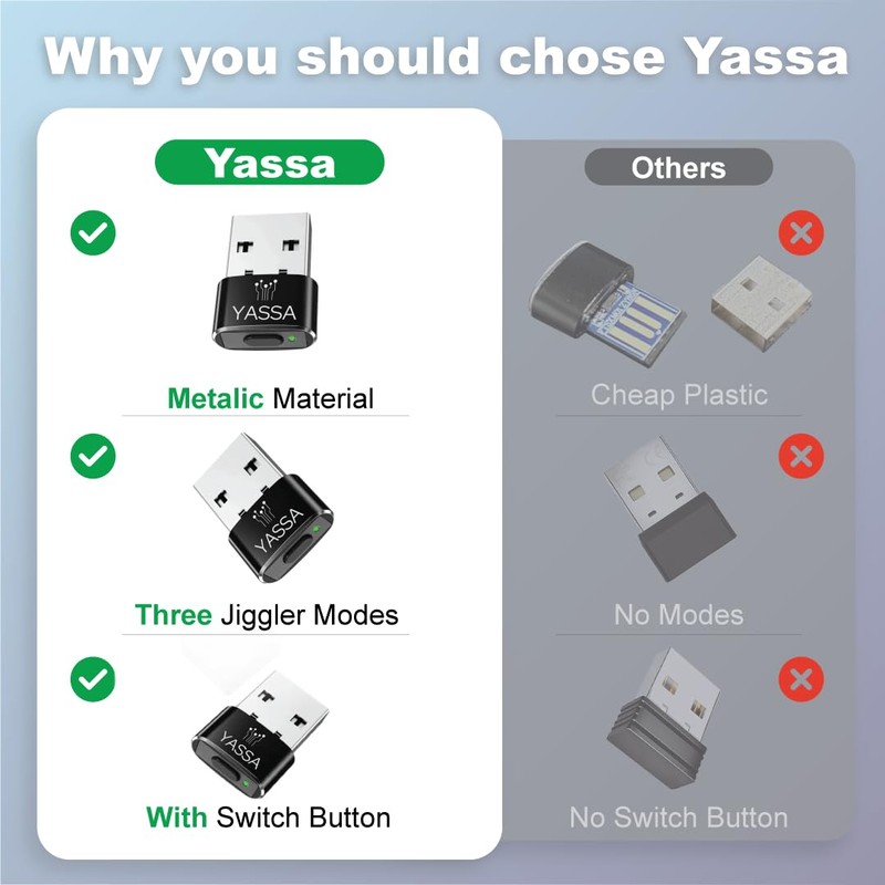 - RECOGNIZED AS A TRUSTED, SECURE DEVICE: When the Yassa mini mouse jiggler is connected to the computer for the first time, it is recognized as a "USB Composite Device" by the computer, rather than any unknown/unsafe device, you can use it with confidence. No software is downloaded, guaranteeing no malware can occur