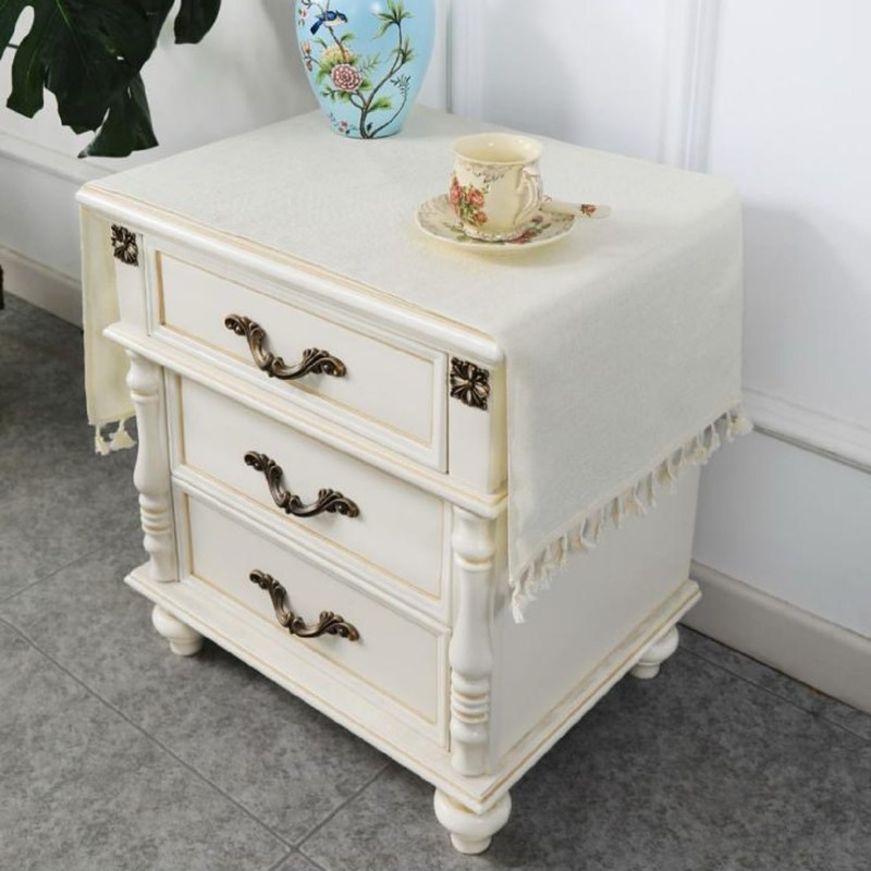 YASSINHE Bedside Table Tassel Cover Nightstand Dust Cover-White