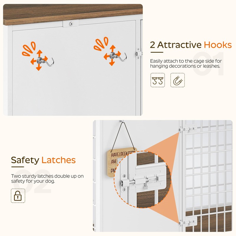 - Fun Dog Crate: Equipped with 2 attractive hooks and a DIY area, the dog kennel lets you hang leashes, display photos, and place attractive toys as you wish. Show off your loving dog-raising routine and make it a fun and personalized pet paradise